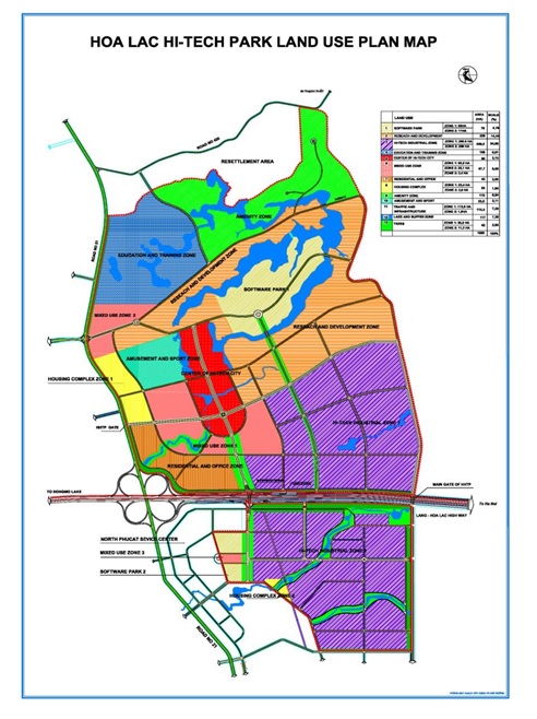 - Công viên phần mềm: 76ha - Khu Nghiên cứu và Phát triển: 229 ha - Khu Công nghiệp CNC: 549,5ha - Khu Giáo dục và Đào tạo: 108 haCác khu chức năng phụ trợ: