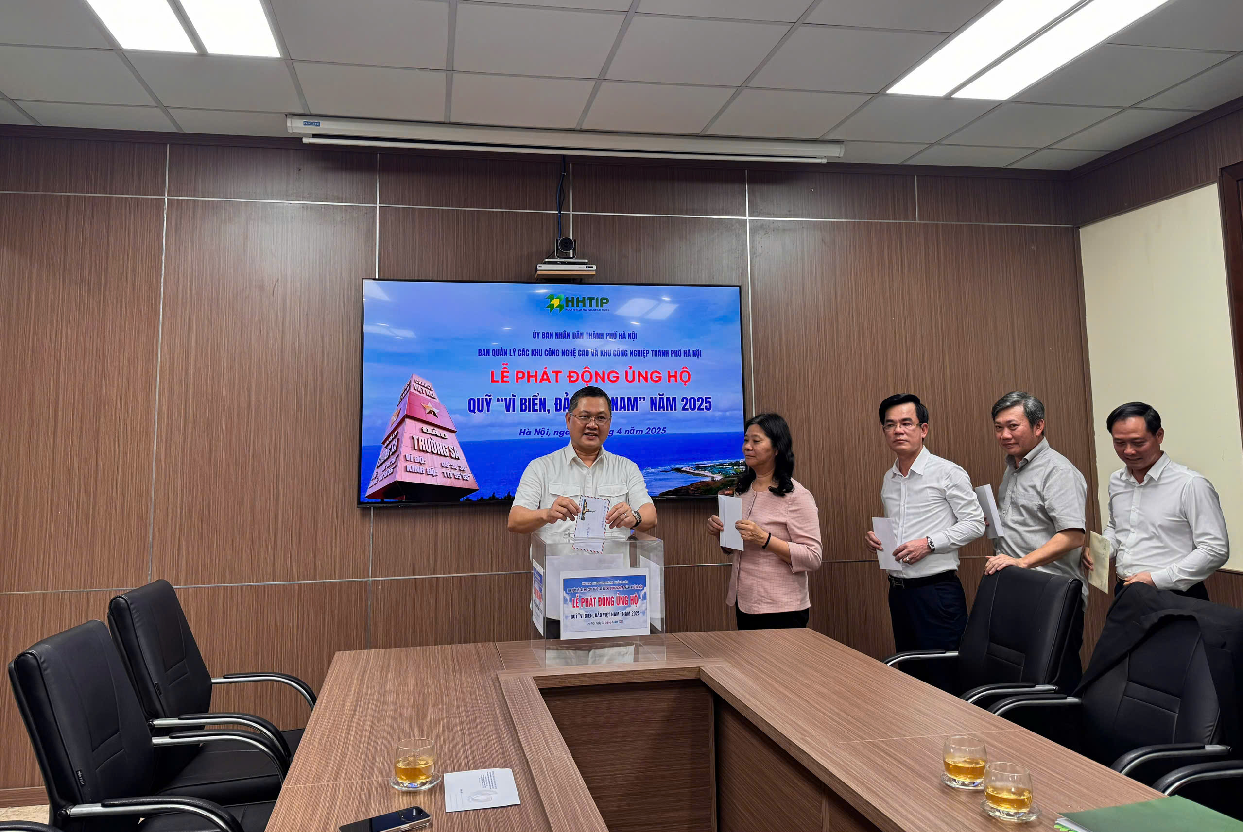 Các đồng chí lãnh đạo Ban Quản lý các Khu công nghệ cao và Khu công nghiệp thành phố Hà Nội ủng hộ Quỹ “Vì biển đảo Việt Nam” năm 2025