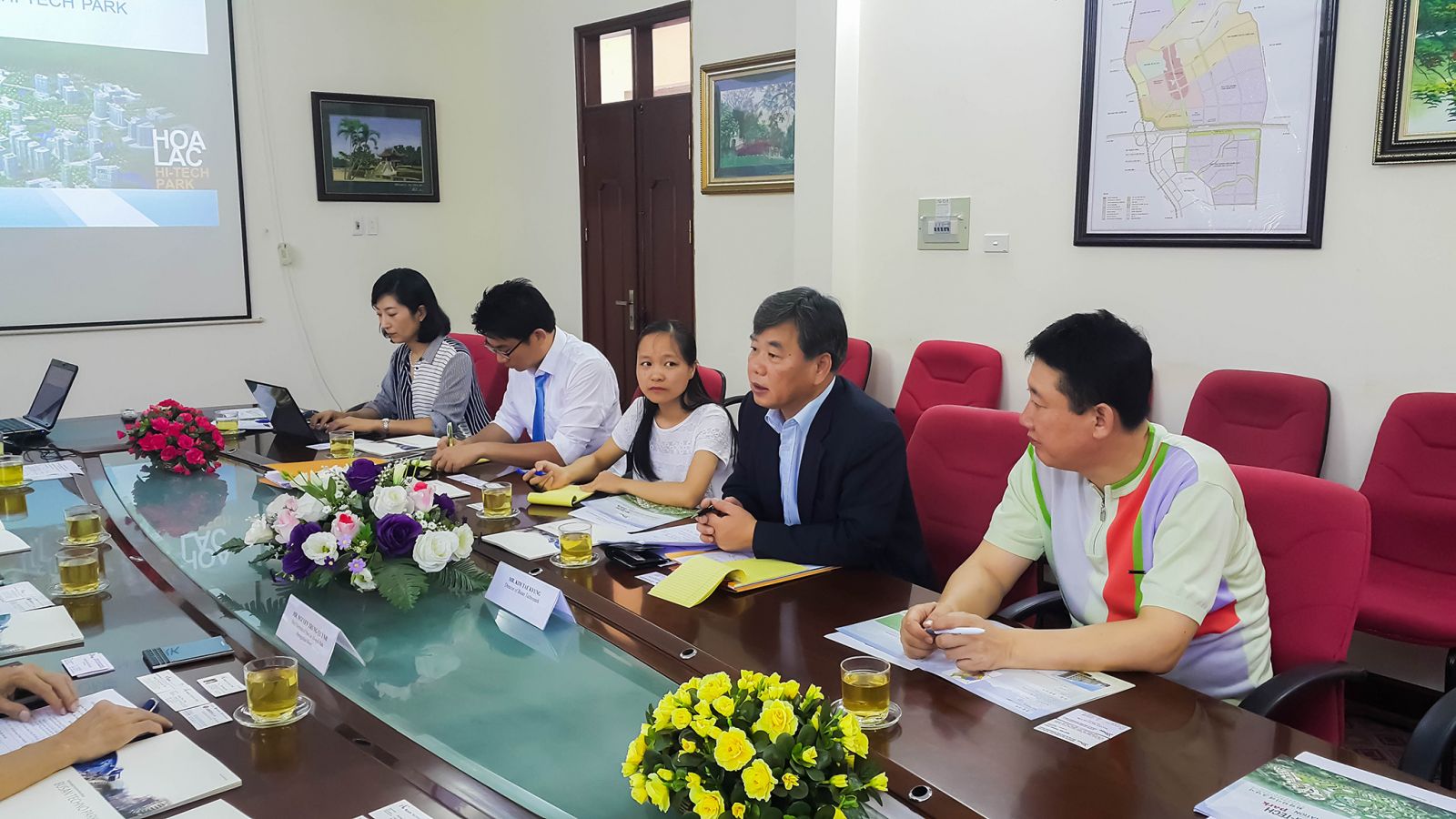 Tại buổi làm việc, Phó Trưởng ban Nguyễn Trung Quỳnh đã giới thiệu với Đoàn thông tin tổng quan về Khu CNC Hòa Lạc, các dự án hợp tác giữa Chính phủ Việt Nam và Chính phủ Hàn Quốc tại Khu, định hướng phát triển của Khu trong thời gian tới cũng như các khó khăn, vướng mắc gặp phải trong quá trình xây dựng và phát triển.