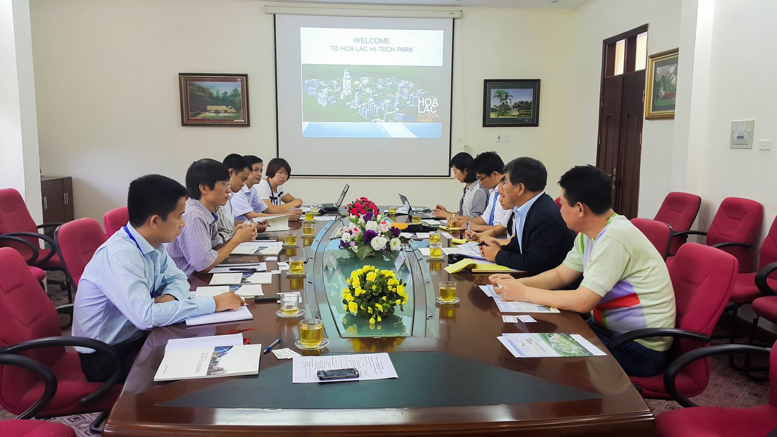 Kết thúc buổi làm việc, hai bên cam kết tiếp tục làm việc để tăng cường các hoạt động hợp tác, trao đổi kinh nghiệm hỗ trợ Khu Công nghệ cao Hòa Lạc trong thời gian tới.