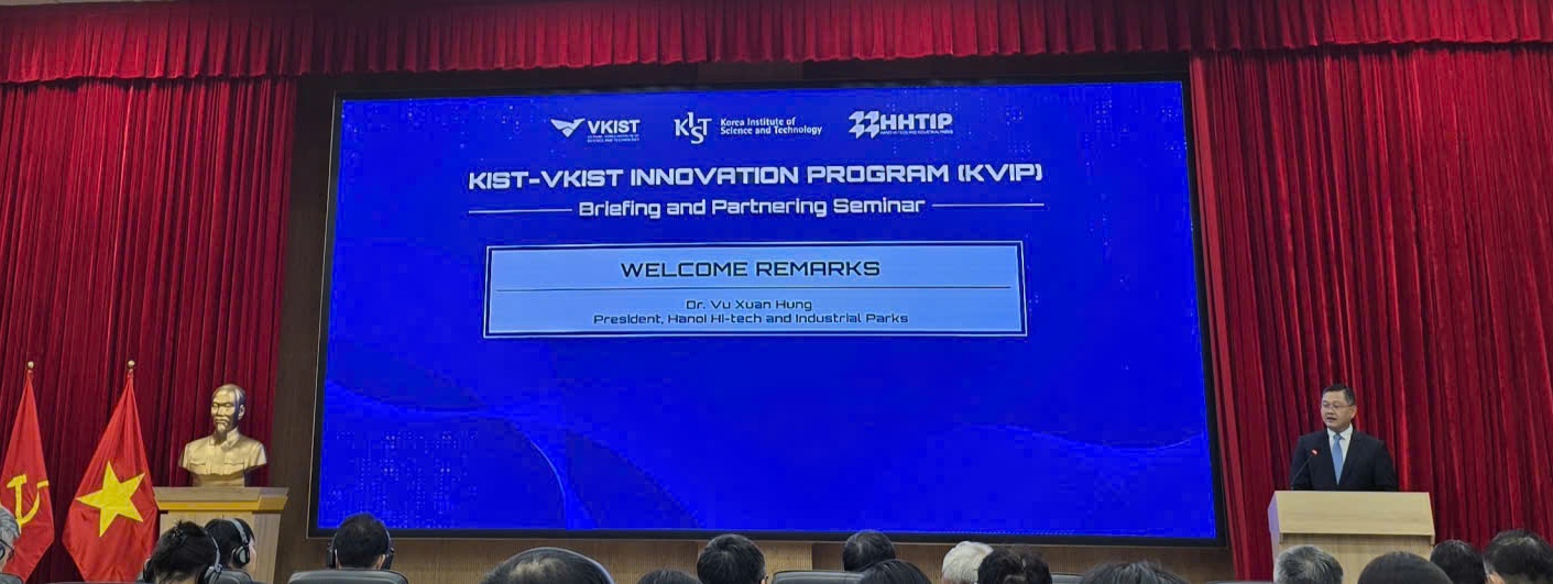 Sáng ngày 06/11/2025, tại Viện Khoa học và Công nghệ Việt Nam – Hàn Quốc, Khu Công nghệ cao Hòa Lạc, đã diễn ra Hội thảo Giới thiệu và Hợp tác Dự án nghiên cứu đổi mới sáng tạo KIST-VKIST (KVIP). Đây là sự kiện do Viện Khoa học và Công nghệ Hàn Quốc, Viện Khoa học và Công nghệ Việt Nam-Hàn Quốc và Ban Quản lý các Khu công nghệ cao và Khu công nghiệp thành phố Hà Nội đồng tổ chức, đánh dấu bước phát triển mới trong hợp tác nghiên cứu, phát triển và đổi mới sáng tạo giữa hai quốc gia.
