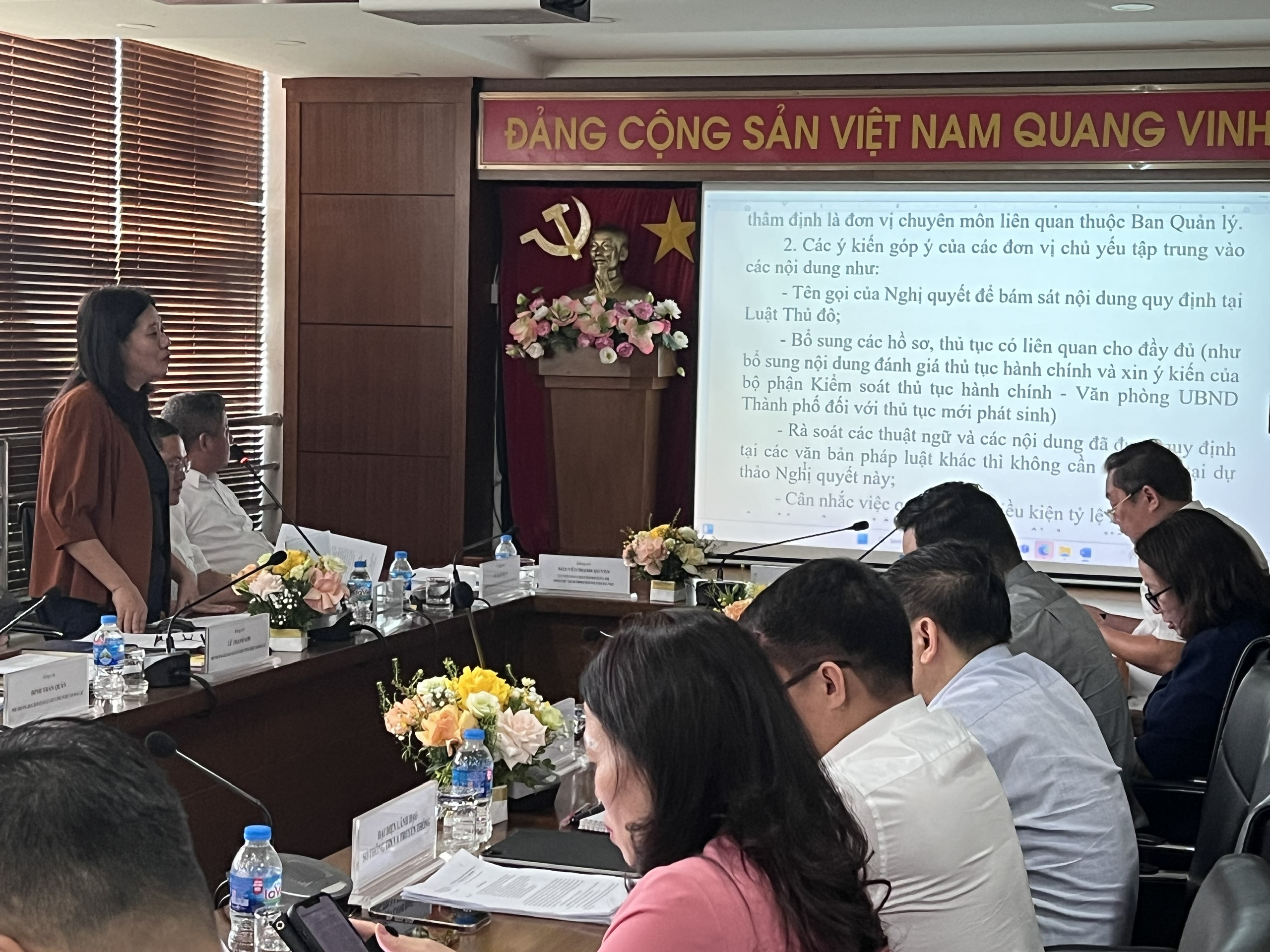 Thảo luận tại buổi làm việc, các ban của HĐND Thành phố, các sở, ngành, địa phương liên quan và các chuyên gia xây dựng Luật thủ đô cơ bản thống nhất với những nội dung đề xuất, kiến nghị của Ban Quản lý, đồng thời trao đổi một số nội dung cụ thể để hoàn thiện hơn nữa Hồ sơ dự thao của 03 Nghị quyết này.