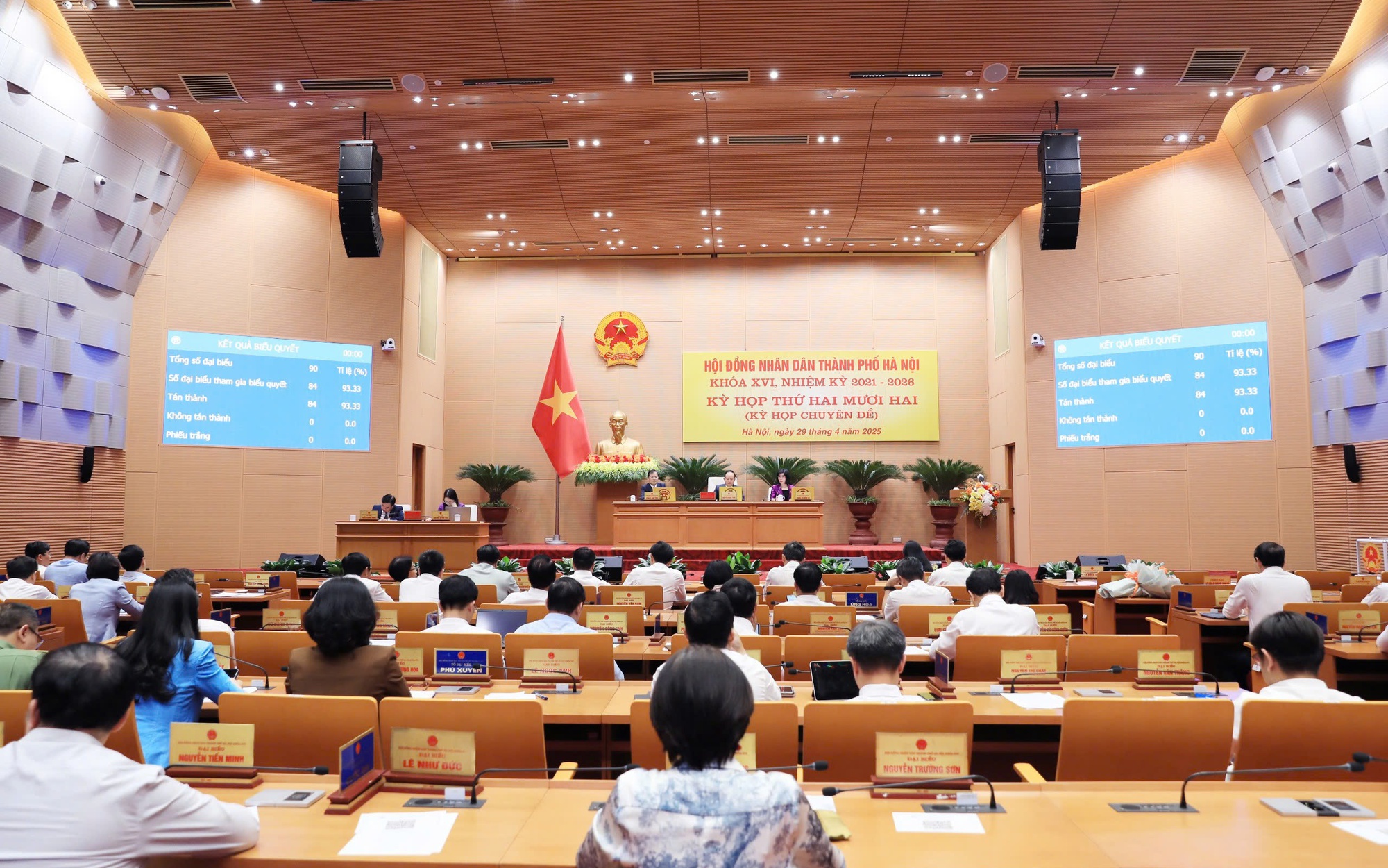 Chiều 29/4, tại kỳ họp thứ 22, với đa số đại biểu có mặt tán thành, HĐND thành phố Hà Nội thông qua Nghị quyết quy định về trình tự, thủ tục thành lập, điều chỉnh, mở rộng ranh giới khu công nghệ cao và thực hiện một số thẩm quyền của Ban Quản lý Khu công nghệ cao và Khu công nghiệp Thành phố.