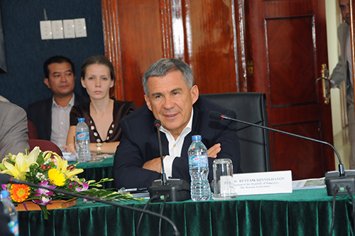 With the aim at promoting cooperation relations between Vietnam and the Federation of Russian in general and Vietnam – the Republic of Tatarstan in particular, President of the Republic of Tatarstan, under the Federation of Russian H.E. Mr. RUSTAM MINNIKHANOV along with his entourage including governmental officials and big enterprises in Tatarstan took an official visit to Vietnam from 8 to 9 September, 2014. In the frame of working visit, Mr. MINNIKHANOV with his delegation had a meeting with the Hoa Lac Hi-tech Park Management Board on 9 September, 2014 to get information and broaden cooperation opportunities between two parties.