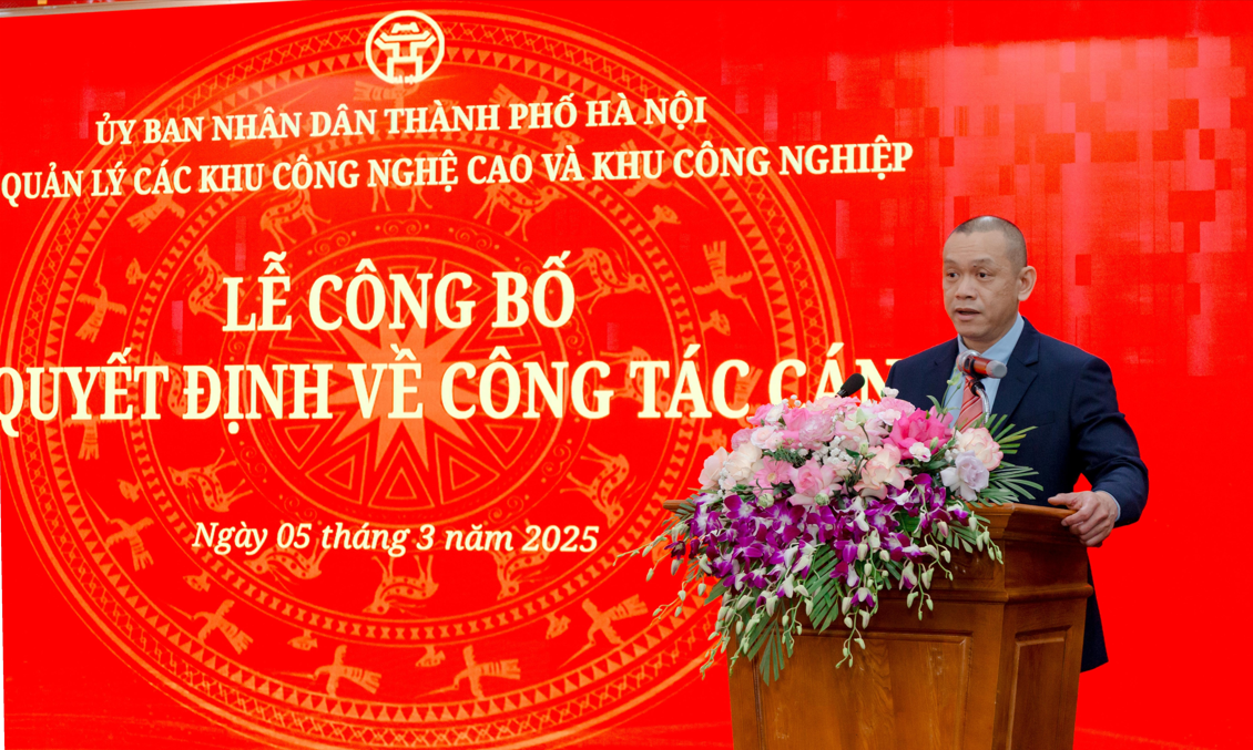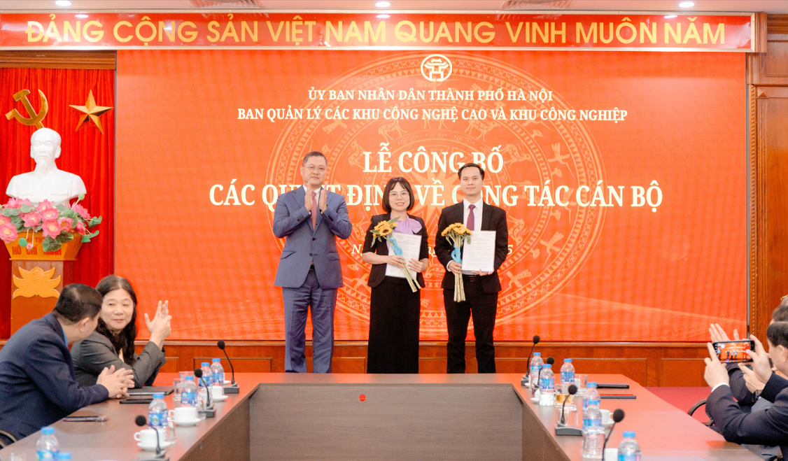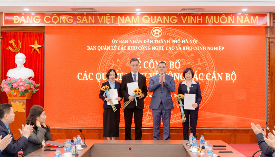 Sáng ngày 05/3/2025, Ban Quản lý các Khu Công nghệ cao và Khu Công nghiệp thành phố Hà Nội đã tổ chức hội nghị công bố các quyết định bổ nhiệm cán bộ. Tại Hội nghị, Ban Quản lý đã trao quyết định bổ nhiệm 10 cấp trưởng và 22 cấp phó của các phòng, đơn vị trực thuộc. TS. Vũ Xuân Hùng, Bí thư Đảng ủy, Trưởng Ban chủ trì Hội nghị. Việc bổ nhiệm này nằm trong quá trình kiện toàn bộ máy tổ chức sau khi sắp xếp lại cơ cấu, nhằm nâng cao hiệu quả quản lý và điều hành. Các cán bộ được bổ nhiệm đều là những cá nhân có kinh nghiệm chuyên môn sâu, năng lực quản lý tốt và đã có nhiều đóng góp trong công tác phát triển các khu công nghệ cao và khu công nghiệp trên địa bàn thành phố.