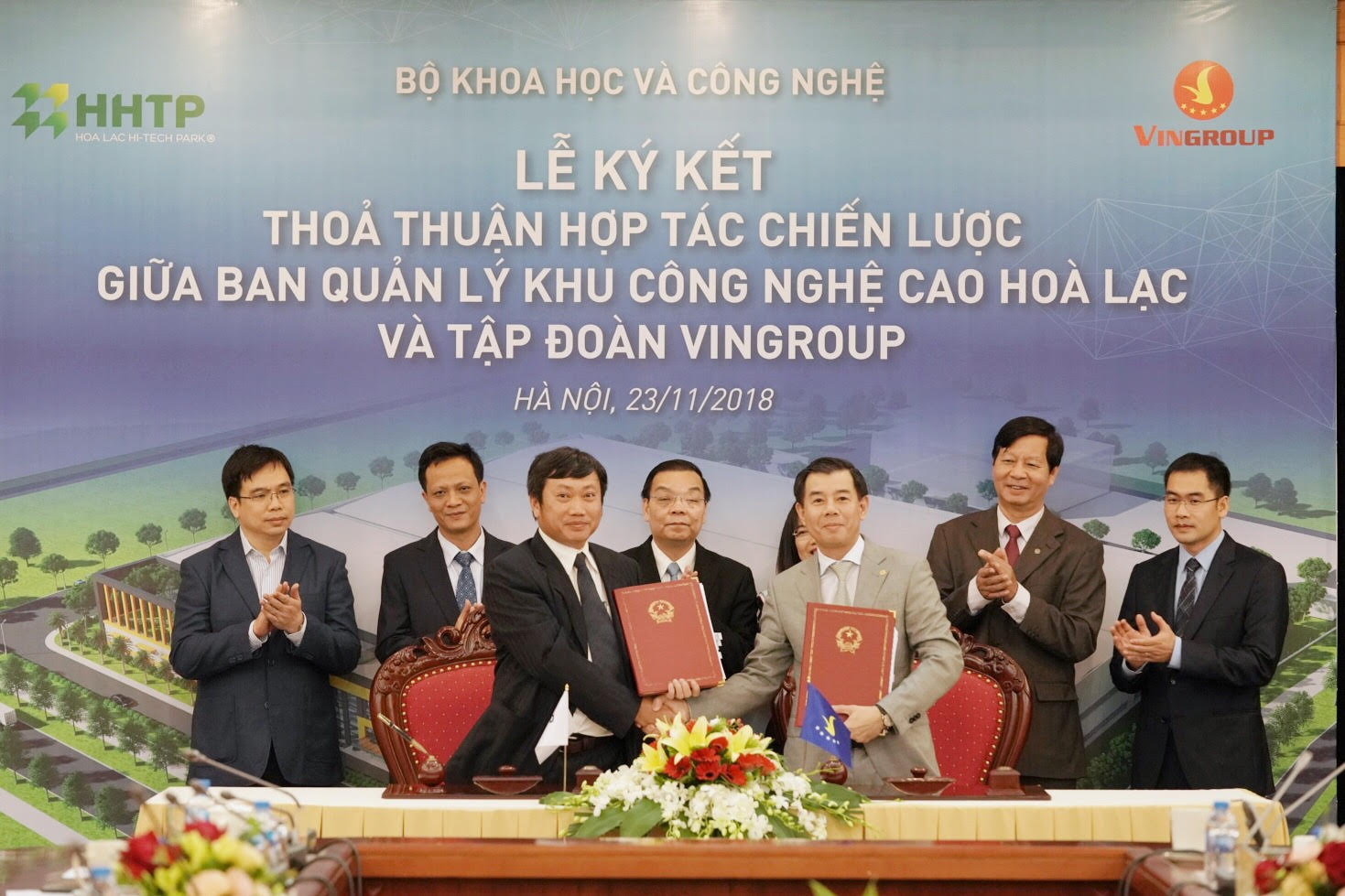 Ngày 23/11, tại trụ sở Bộ Khoa học và Công nghệ, Ban Quản lý khu Công nghệ cao Hòa Lạc và Tập đoàn Vingroup đã ký Thỏa thuận hợp tác chiến lược trong việc đầu tư và phát triển Khu CNC Hòa Lạc. Tham dự buổi lễ ký kết có Bộ trưởng Bộ Khoa học và Công nghệ Chu Ngọc Anh, Phó Chủ tịch Viện Hàn lâm Khoa học và Công nghệ Việt Nam Phan Ngọc Minh.
