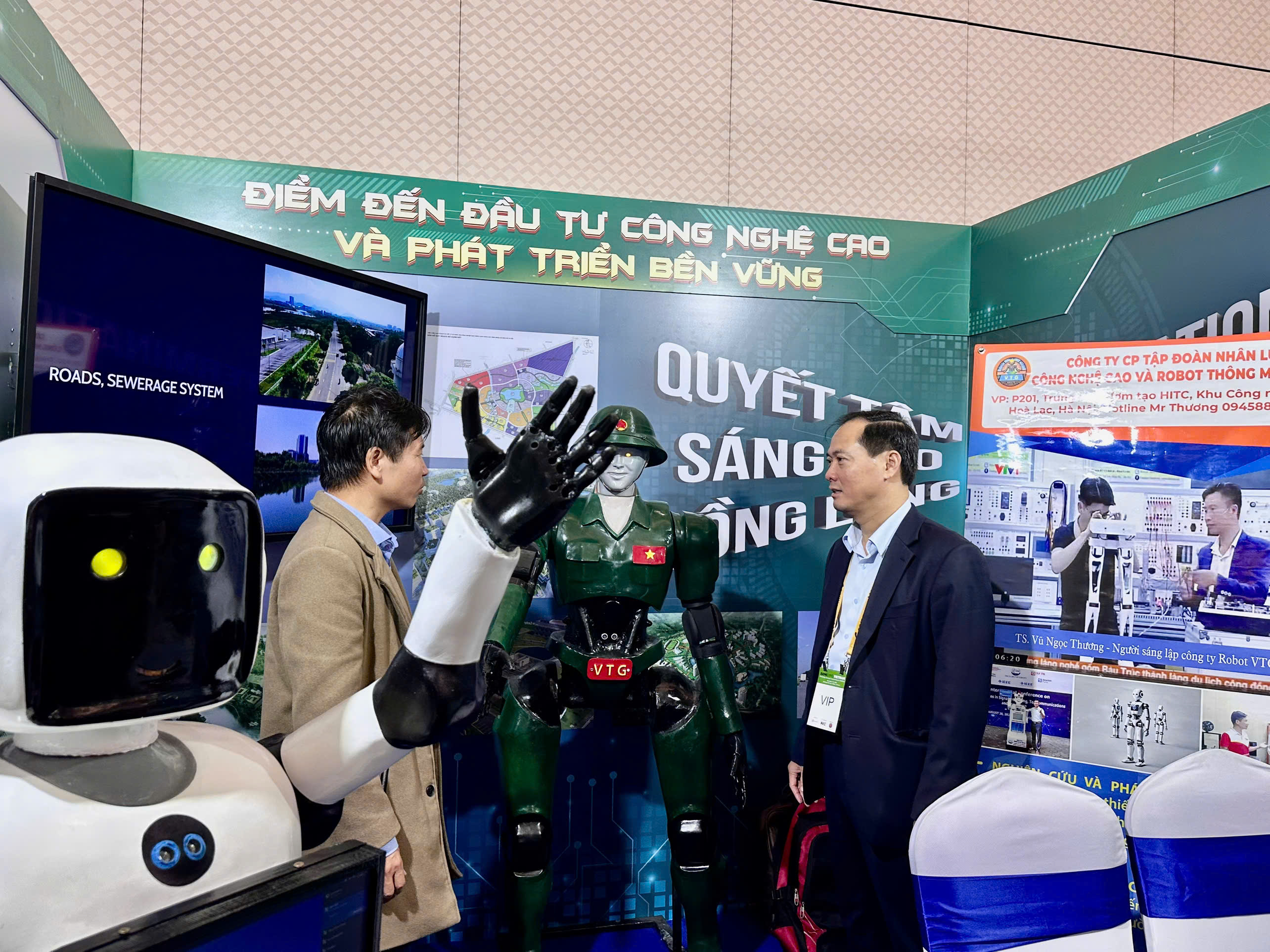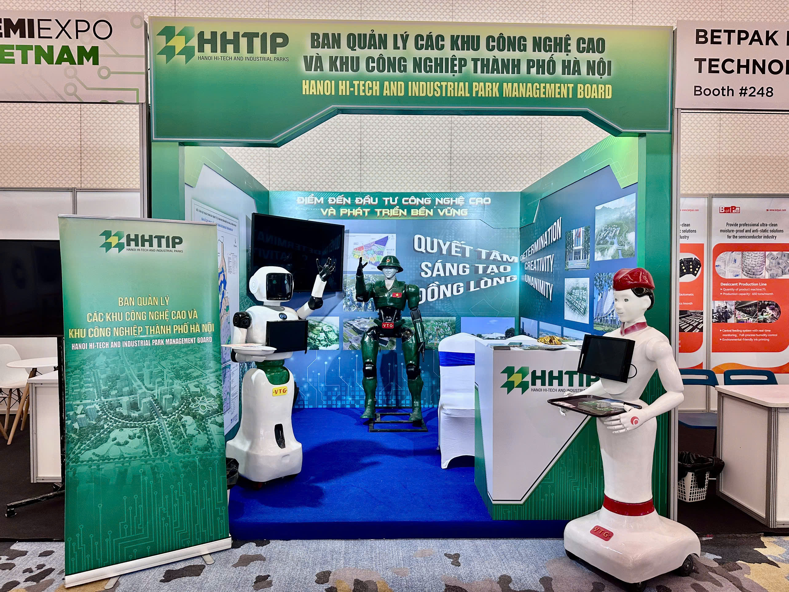 Tại khu vực triển lãm, Ban Quản lý các Khu công nghệ cao và Khu công nghiệp TP. Hà Nội tham gia một gian hàng xúc tiến đầu tư, trưng bày các thông tin, chính sách ưu đãi và cơ hội đầu tư vào các khu công nghiệp, khu công nghệ cao của Thành phố; đồng thời kết hợp giới thiệu mô hình robot phục vụ hành chính công do Công ty VTG phát triển. Gian hàng đã thu hút sự quan tâm của nhiều đại biểu, chuyên gia và nhà đầu tư quốc tế đến tìm hiểu, trao đổi cơ hội hợp tác.