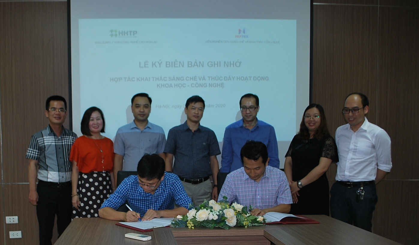 Ngày 22/5/2020, Ban Quản lý Khu Công nghệ cao Hòa Lạc đã ký kết Biên bản ghi nhớ với Viện Nghiên cứu sáng chế và khai thác công nghệ, Bộ Khoa học và Công nghệ về hợp tác khai thác sáng chế và thúc đẩy hoạt động khoa học – công nghệ.