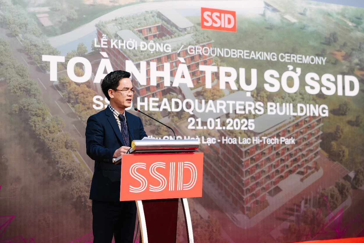 Phát biểu tại buổi lễ, ông Lê Thanh Sơn, Phó Trưởng ban Quản lý Khu CNC Hòa Lạc khẳng định sự đồng hành và hỗ trợ của Ban Quản lý đối với việc triển khai dự án của các Nhà đầu tư tại Khu CNC Hòa Lạc trong đó có Công ty Cổ phần công nghệ số SSI. Ban Quản lý sẽ tạo điều kiện thuận lợi nhất về thủ tục pháp lý để quá trình triển khai xây dựng Dự án “Trung tâm Nghiên cứu Phát triển Công nghệ SSI” được diễn ra thuận lợi và nhanh chóng, sớm đưa công trình vào khai thác, vận hành, đảm bảo dự án phát huy tối đa hiệu quả, đóng góp thiết thực vào sự phát triển chung của Khu CNC Hòa Lạc. Ông cũng đặc biệt lưu ý nhà đầu tư, nhà thầu và các đơn vị thi công khi được triển khai thi công cần tuân thủ nghiêm ngặt các quy định của pháp luật và Khu CNC Hòa Lạc về an toàn lao động, trật tự xây dựng và bảo vệ cảnh quan môi trường, đảm bảo dự án được triển khai đúng tiến độ, đạt chất lượng cao nhất, trở thành một công trình điểm nhấn của Khu Công nghệ cao Hòa Lạc.