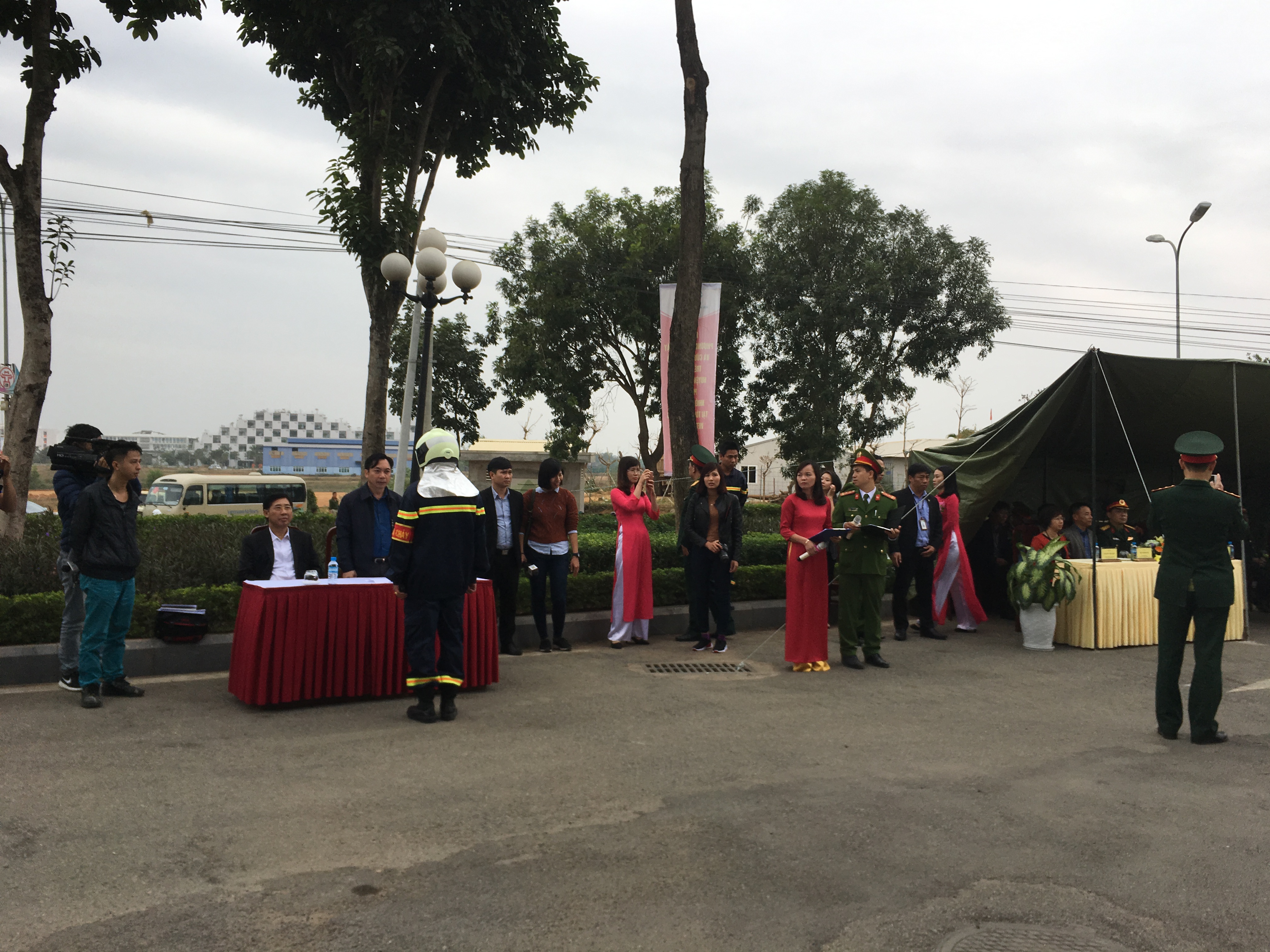 Đến dự buổi diễn tập có đồng chí Nguyễn Hồng Nhật, Phó Bí thư thường trực Huyện ủy Thạch Thất, đồng chí Trần Đức Nguyên, Chủ tịch UBND huyện Thạch Thất, đồng chí Thiếu tướng Hoàng Quốc Định, Giám đốc Cảnh sát phòng cháy chữa cháy Thành phố Hà Nội; đại diện Lãnh đạo Phòng Cảnh sát PCCC số 14; đại diện Ban Quản lý Khu Công nghệ cao Hoà Lạc; đại diện Tập đoàn Viễn thông Quân đội (Viettel); Công an, BCH quân sự huyện Thạch Thất; các Phòng, Ban, Ngành thuộc huyện; Trung tâm Y tế huyện; UBND các xã, thị trấn trực thuộc huyện.