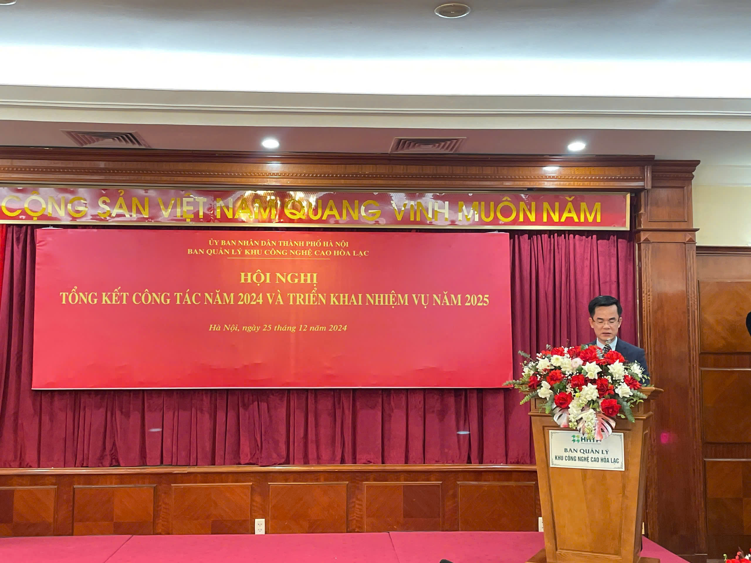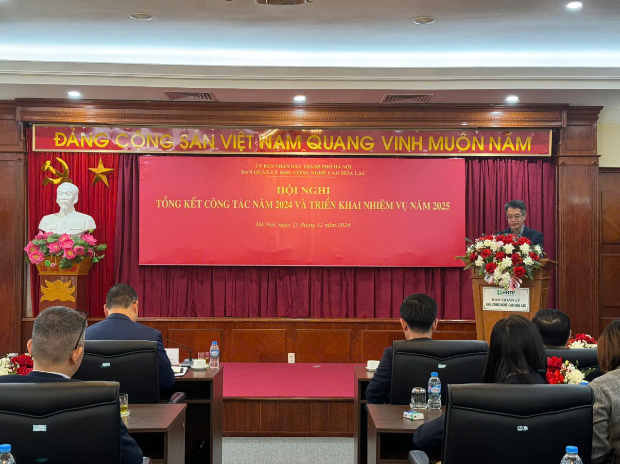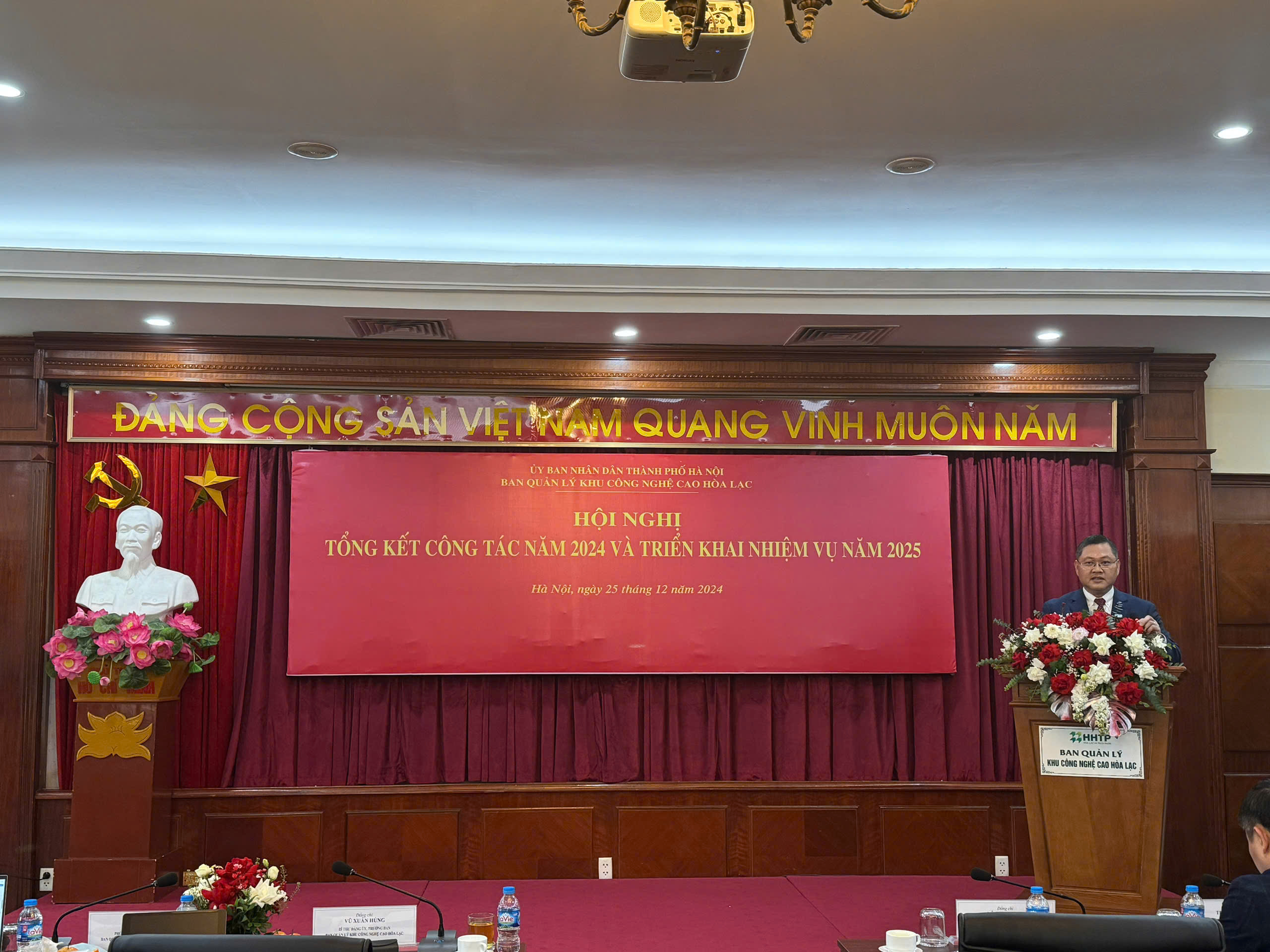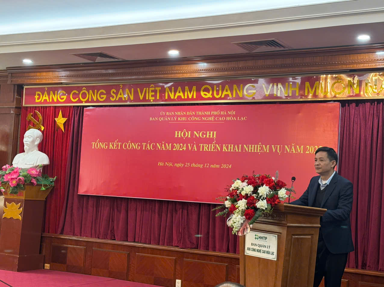 Ngày 25/12/2024, tại Khu Công nghệ cao Hòa Lạc, Ban Quản lý Khu Công nghệ cao Hòa Lạc đã tổ chức Hội nghị tổng kết công tác năm 2024 và triển khai nhiệm vụ năm 2025. TS. Vũ Xuân Hùng, Bí thư Đảng ủy, Trưởng Ban Quản lý Khu Công nghệ cao Hòa Lạc chủ trì Hội nghị. Tham dự Hội nghị còn có các Phó Trưởng ban, lãnh đạo các đơn vị trực thuộc và các cán bộ, công chức và viên chức thuộc Ban Quản lý.