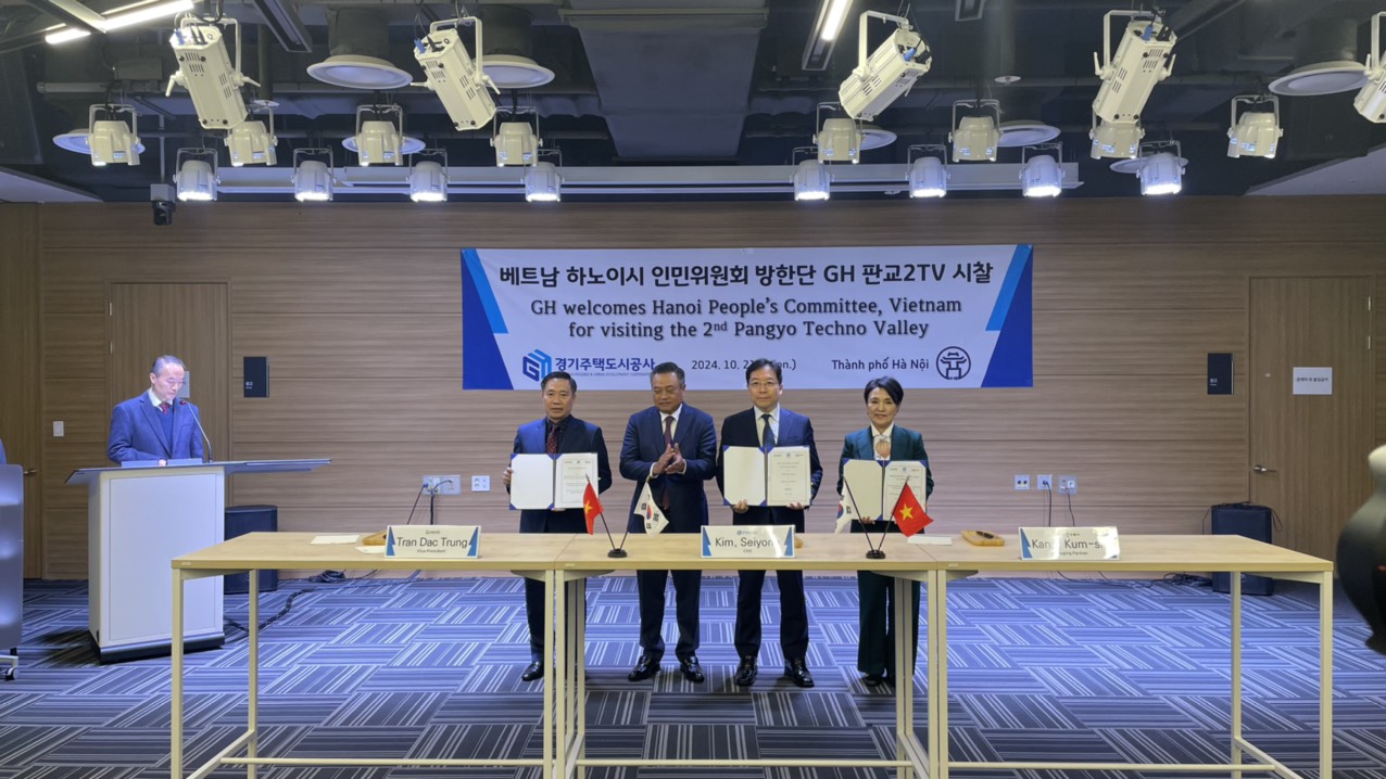 Trong khuôn khổ chuyến công tác tại Hàn Quốc của Đoàn đại biểu cấp cao Thành phố Hà Nội do Đồng chí Trần Sỹ Thanh, Ủy viên Ban chấp hành Trung ương Đảng, Chủ tịch UBND Thanh phố Hà Nội làm trưởng đoàn, ngày 21/10/2024, Ban Quản lý Khu Công nghệ cao Hòa Lạc đã ký kết ghi nhớ hợp tác với Tập đoàn phát triển nhà đô thị Gyeonggi và Công ty Luật One Law Partners.