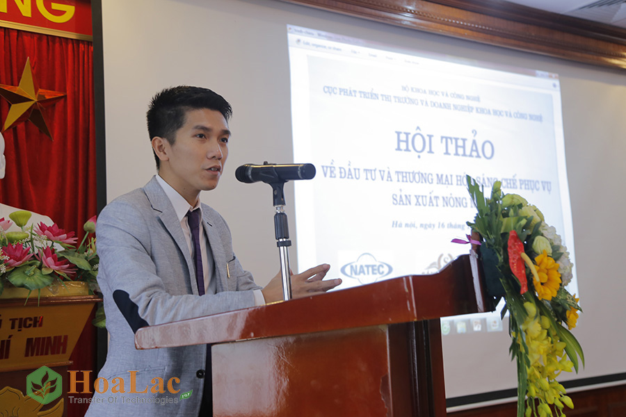 Ông Nguyễn Ninh Hồng Quang- PGĐ Trung tâm DV, trình diễn và CGCN Hòa Lạc Tham luận về “Phát triển hàng hóa theo chuỗi giá trị”