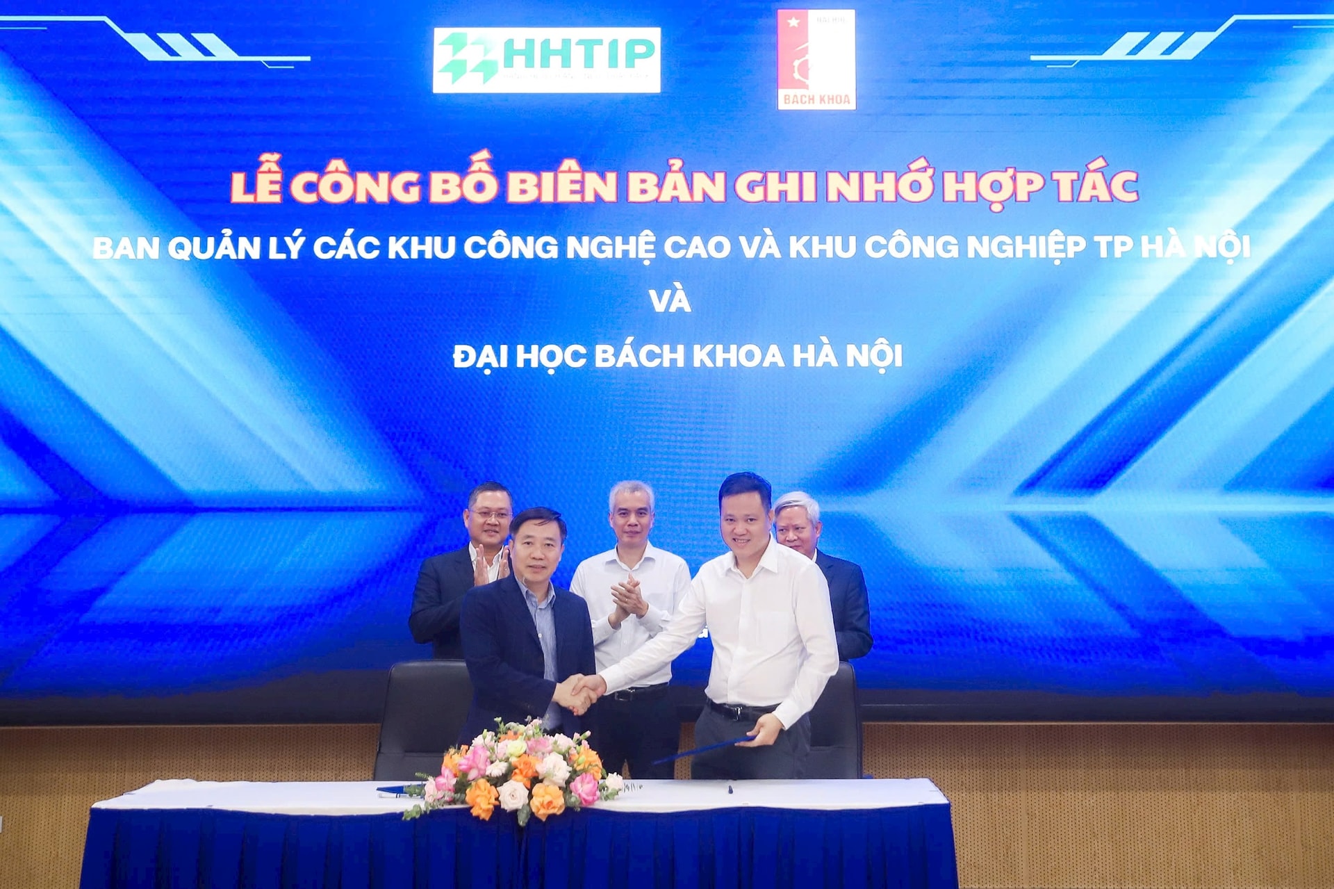 Biên bản ghi nhớ hợp tác giữa Ban Quản lý các Khu Công nghệ cao và Khu Công nghiệp Thành phố Hà Nội và Đại học Bách khoa Hà Nội, khẳng định cam kết xây dựng một hệ sinh thái đổi mới sáng tạo, kết nối đào tạo, nghiên cứu và khởi nghiệp, từ đó thúc đẩy thương mại hóa công nghệ và phát triển nguồn nhân lực chất lượng cao cho Việt Nam.