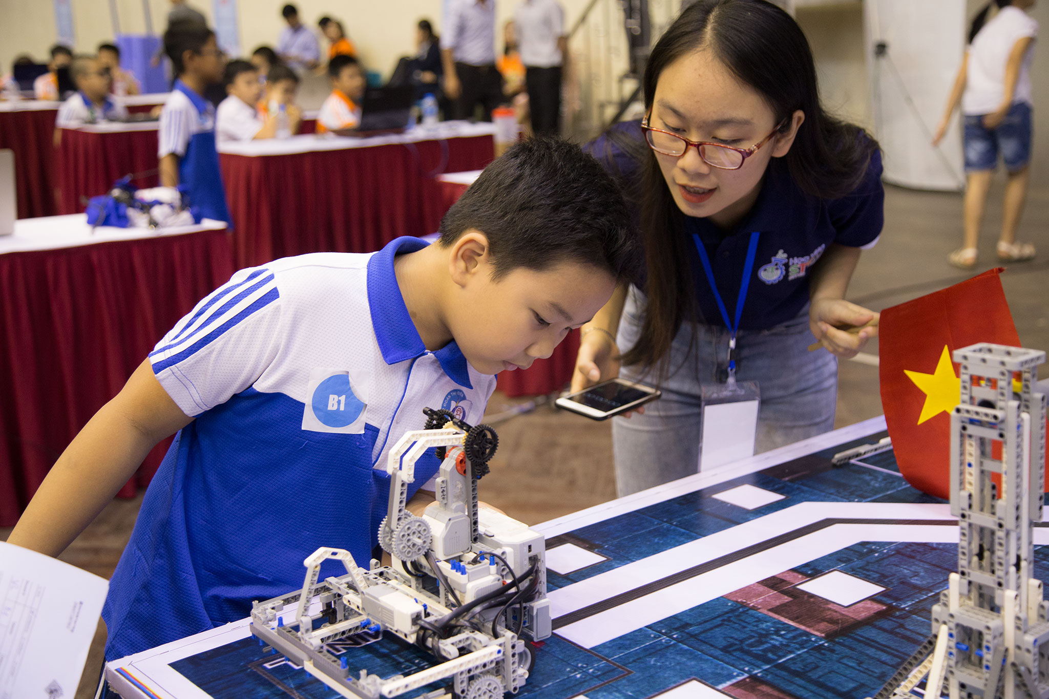 Ngày 28/10, 42 đội Robotics đã trải qua 2 vòng thi đấu Robothon. Vòng 1 học sinh làm bài theo đề có sẵn và đã được thầy cô hướng dẫn. Vòng 2 là vòng phát triển tư duy và thể hiện kiến thức lập trình. Ở vòng này, giám khảo đưa ra một bài toán ngẫu nhiên và học sinh phải tự vận dụng kiến thức đã học cùng khả năng phân tích tình huống để xử lý giải bài toán của ban giám khảo trong vòng 30 phút. Mỗi năm một chủ đề, sau gần 10 năm triển khai chương trình Robothon tại Việt Nam, việc học và chơi với robot, tập lập trình… đã trở thành một phong trào được nhiều trẻ em và gia đình yêu thích, hướng cho học sinh tới những giá trị nhân văn trong cuộc sống và cập nhật các tiến bộ khoa học công nghệ.