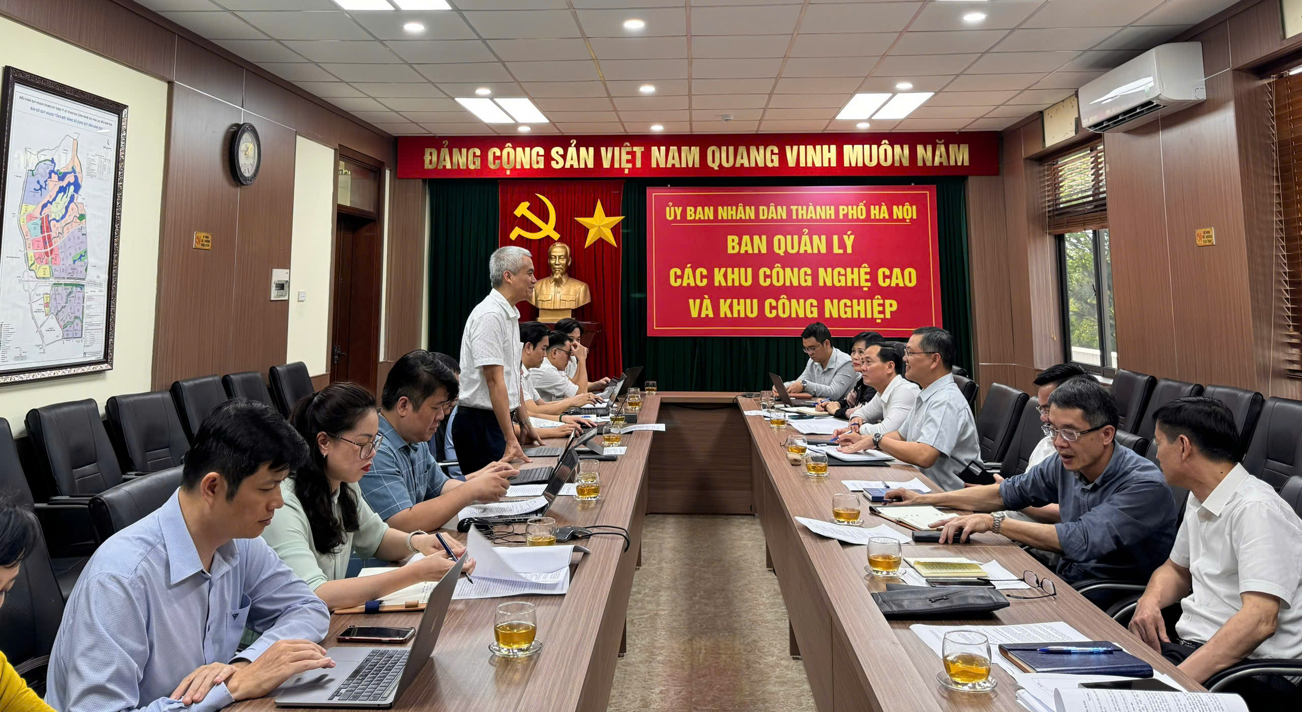 Chiều ngày 23/4/2025, Ban Quản lý các Khu công nghệ cao và Khu công nghiệp thành phố Hà Nội đã phối hợp với Sở Khoa học và Công nghệ thành phố Hà Nội tổ chức Hội nghị triển khai một số nhiệm vụ phối hợp công tác giữa 2 cơ quan trong năm 2025 và thời gian tiếp theo. Đồng chí Vũ Xuân Hùng, Trưởng Ban Quản lý các Khu công nghệ cao và Khu công nghiệp và đồng chí Nguyễn Hồng Sơn, Giám đốc Sở Khoa học và Công nghệ đồng chủ trì buổi làm việc. Tham dự có các đồng chí Phó Trưởng ban, Phó Giám đốc Sở cùng lãnh đạo các phòng, đơn vị chuyên môn của hai cơ quan.