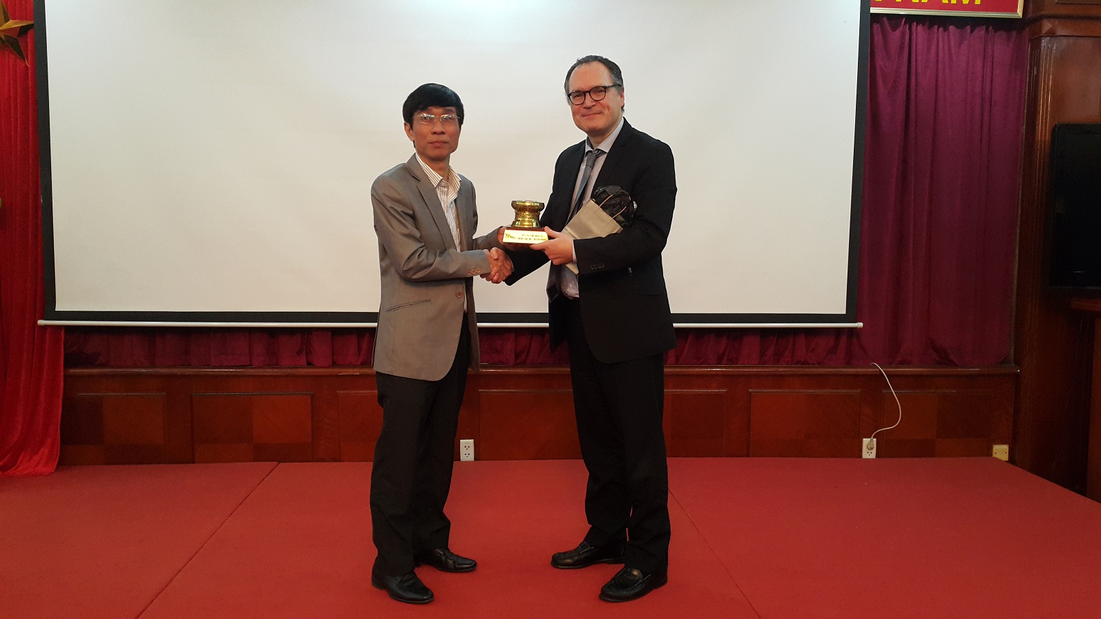 Phó Trưởng Ban Nguyễn Trung Quỳnh và ông Nick Furneaux tặng quà lưu niệm