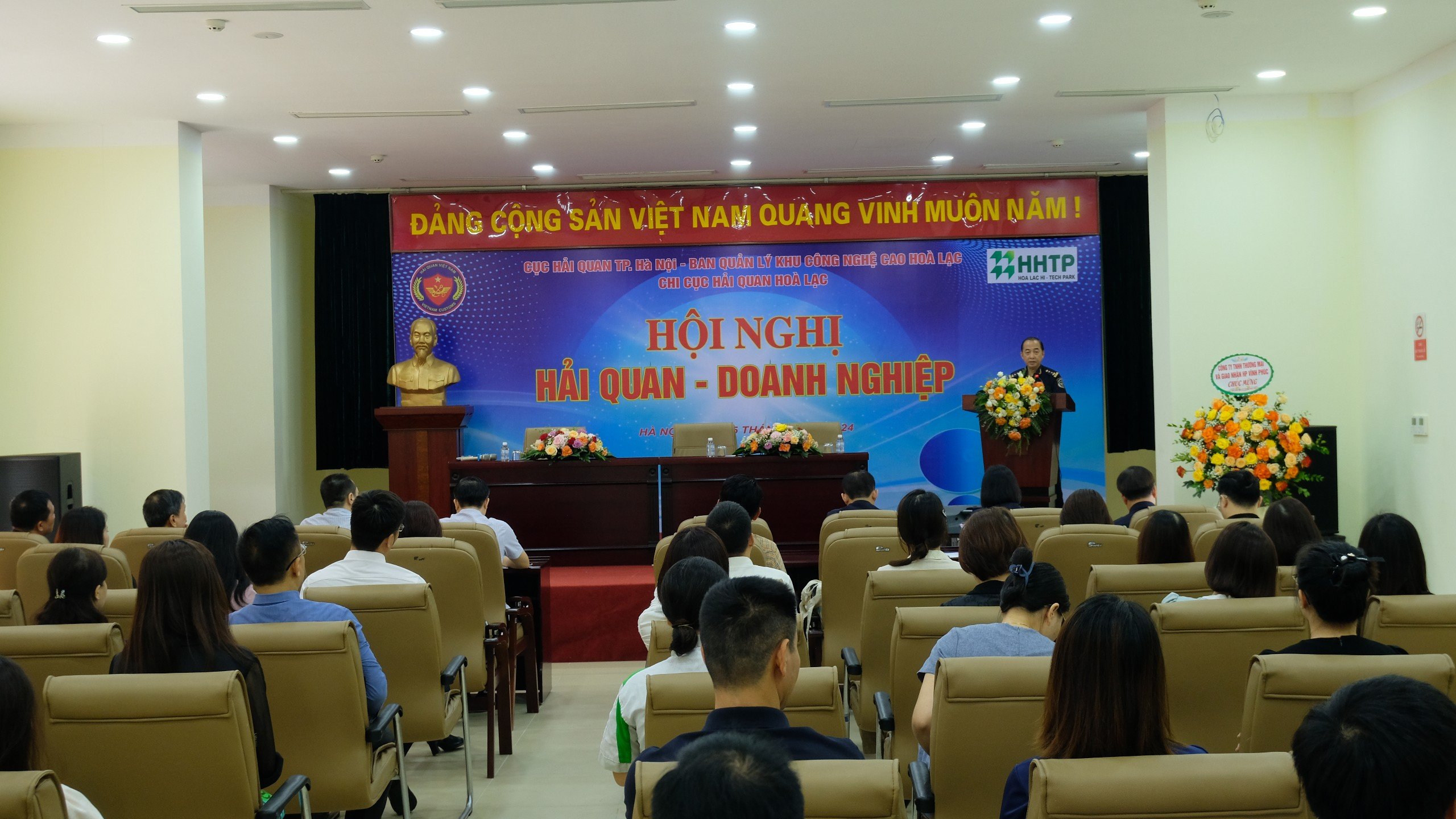 Phát biểu khai mạc hội nghị, Chi cục trưởng Chi cục Hải quan Hòa Lạc Vũ Xuân Kế chia sẻ, để tạo thuận lợi cho cộng đồng doanh nghiệp, Chi cục Hải quan Hòa Lạc luôn nỗ lực, đồng hành cùng cộng đồng doanh nghiệp trong quá trình sản xuất, kinh doanh. Đặc biệt, bên cạnh vị trí thuận lợi tại Khu công nghệ cao Hòa Lạc, Chi cục Hải quan Hòa Lạc còn được trang bị có đầy đủ cơ sở vật chất hiện đại đảm bảo thực hiện thủ tục hải quan, kiểm tra giám sát hải quan, đáp ứng nhu cầu của các doanh nghiệp, nhà đầu tư trong khu công nghệ cao Hòa Lạc cũng như các khu vực lân cận.