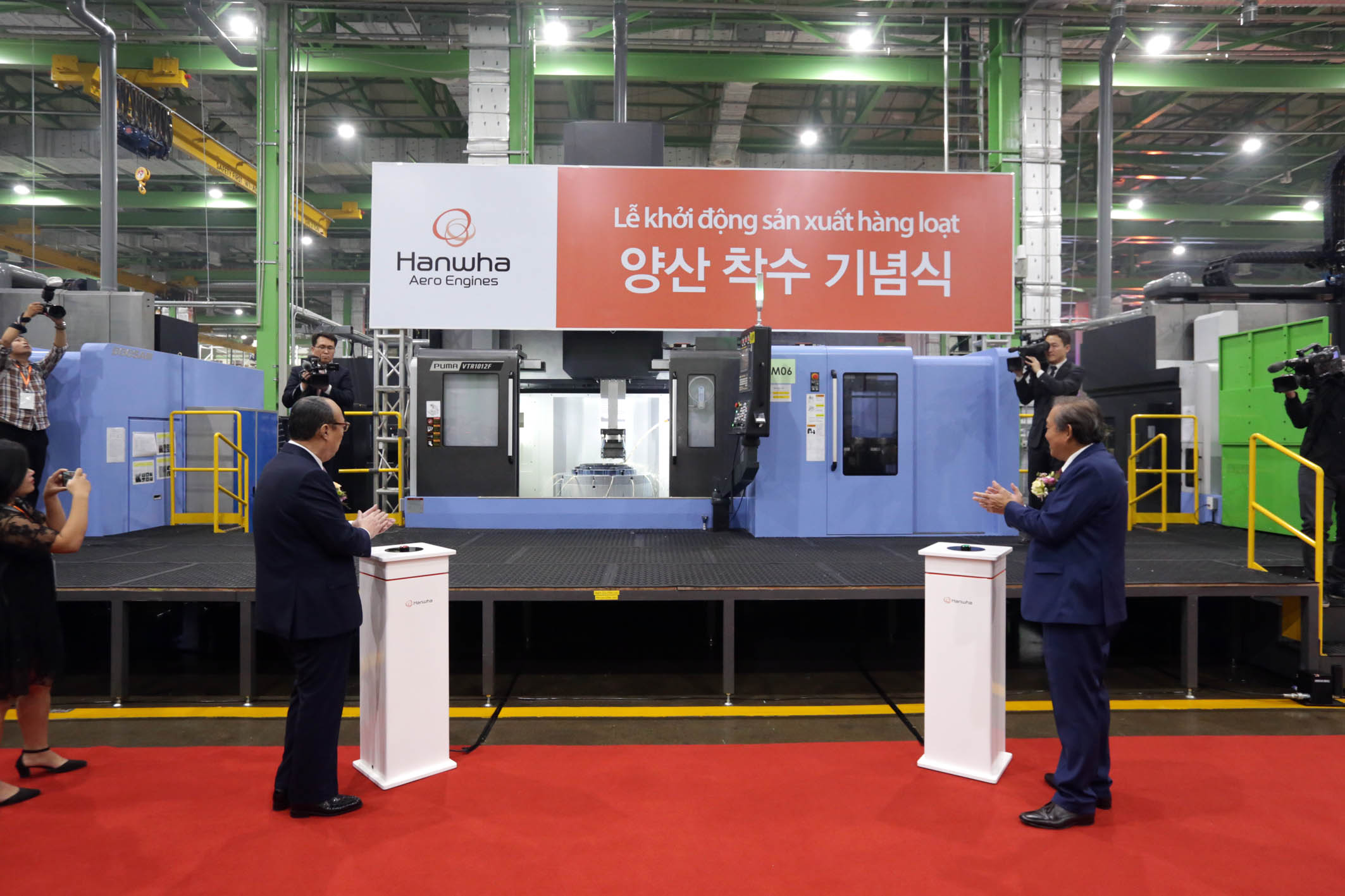 Nghi thức ấn nút khánh thành Nhà máy Hanwha Aero Engines