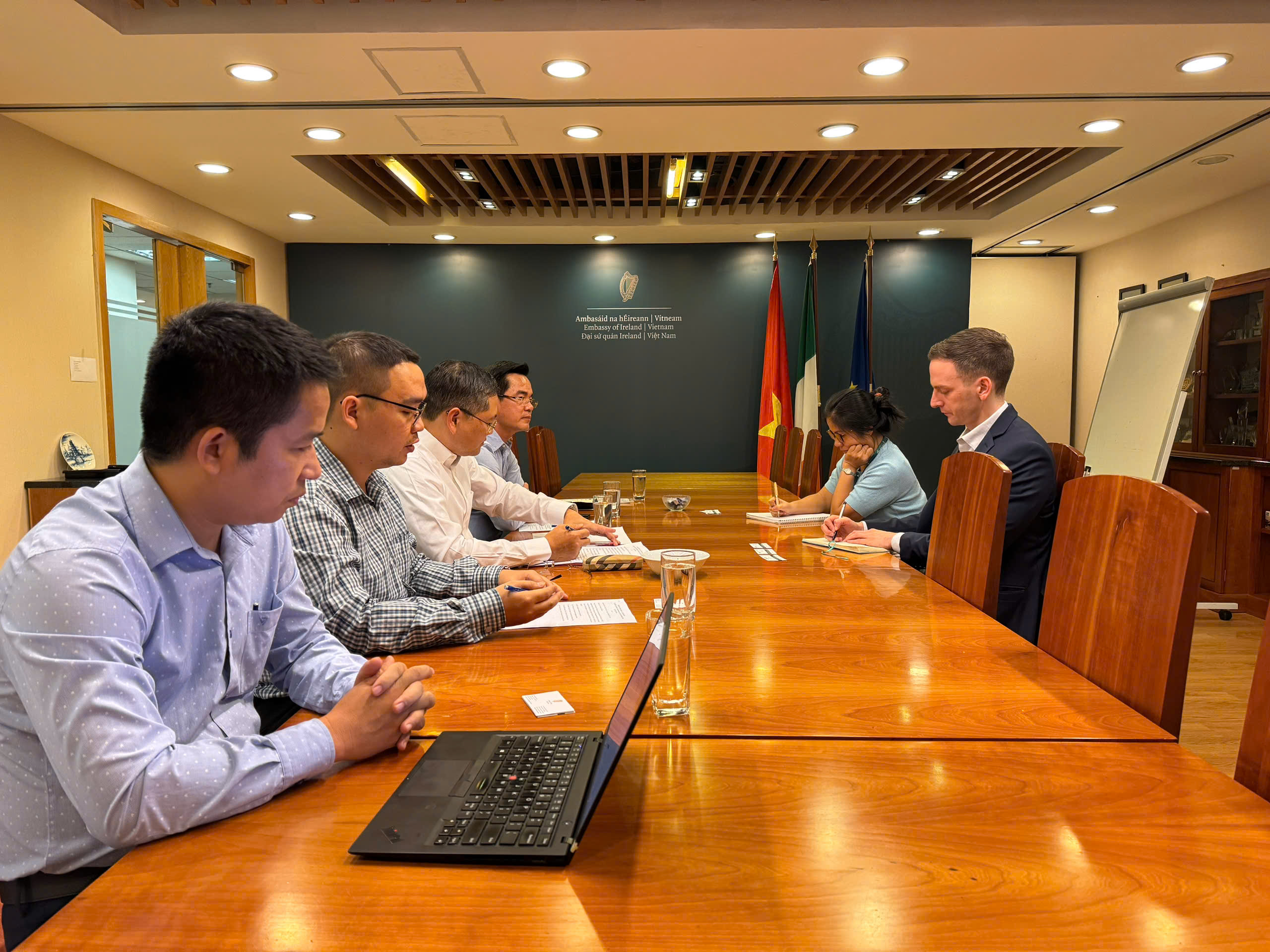 Chiều ngày 22/11/2024, nhân dịp nhận nhiệm vụ công tác mới tại Ban Quản lý Khu CNC Hòa Lạc, với mục tiêu xây dựng mối quan hệ công tác và kết nối với các đối tác/doanh nghiệp Ireland trong thời gian tới, Ông Vũ Xuân Hùng, Trưởng ban cùng Đoàn công tác của Ban Quản lý đã đến thăm và làm việc tại Đại sứ quán Ireland tại Việt Nam. Ông Conor Finn, Phó Đại sứ đã chủ trì tiếp Đoàn.